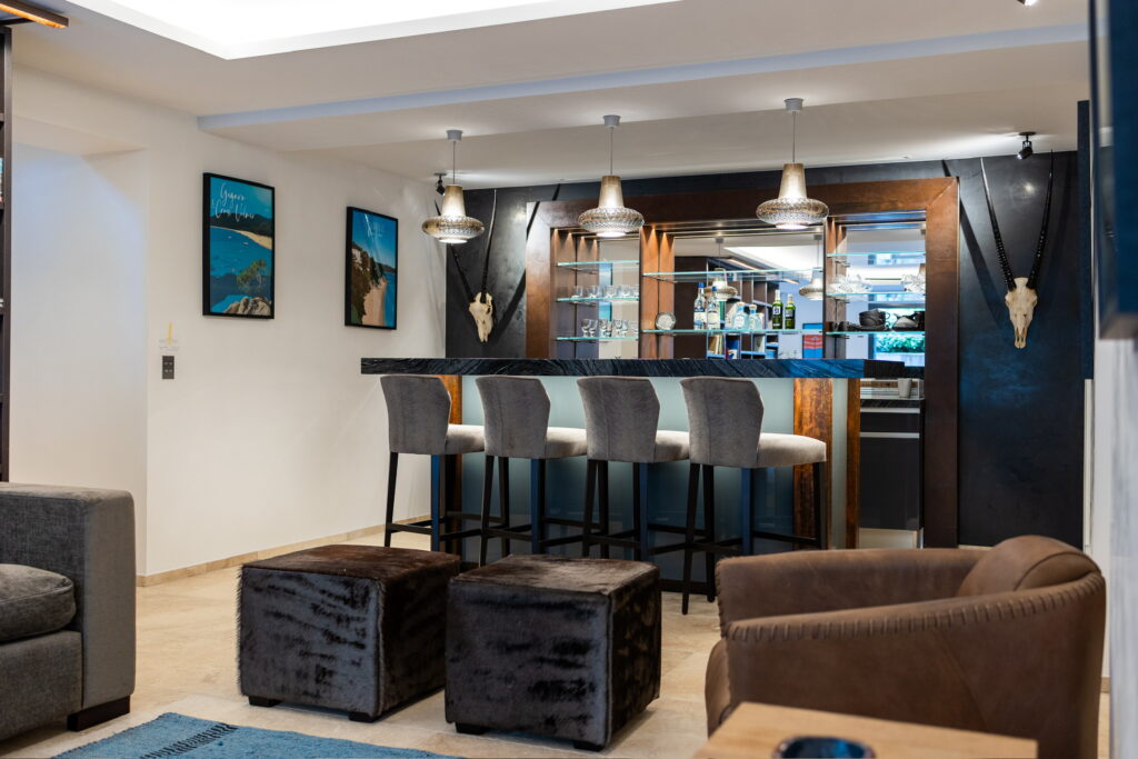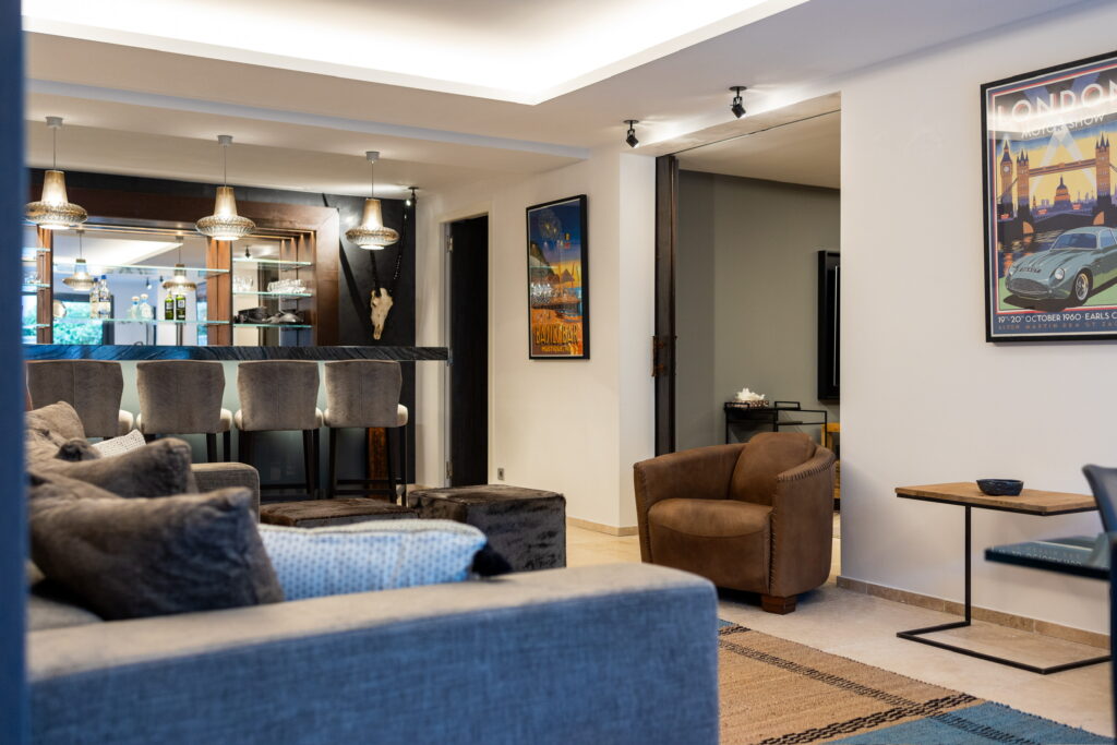 Explore the Villa Villa General View Villa Entrance Living Room and Dining Room main floor Kitchen Room 1 Room 2 Room 3 Living Space downstairs Room 4 Room 5 Garden Living and Dining Pool Pool Bar Garden Yoga Garden Barbecue Spare Room Sofabed